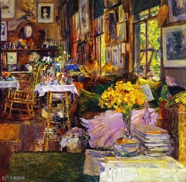 而在比尔·盖茨的图书馆里,则悬挂着施尔德·哈森的印象主义画作《花房》《Room of Flowers》,价值2千万美金(约合1.3亿人民币)。