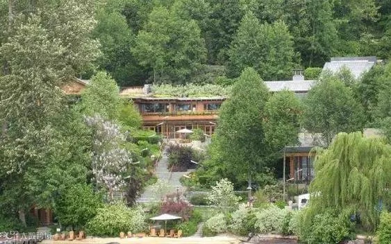 盖茨把岸边小山挖去一半,前临水、后倚山,堪称聚拢财气、卧虎藏龙的风水宝地。占地当然极为庞大,66000平方英亩,相当于几十个足球场。