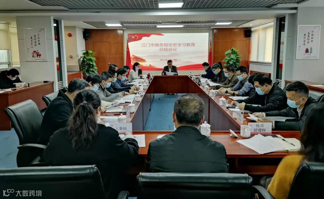 1月27日,江门市商务局召开党史学习教育总结会议,深入学习贯彻习近平总书记关于党史学习教育的重要指示精神,传达学习党中央、省委、市委党史学习教育总结会议精神,全面总结我局开展党史学习教育情况,对巩固拓展学习教育成果,推动党史学习教育常态化长效化作出部署安排。市委党史学习教育第一巡回指导组宋华组长一行到会指导,市商务局领导班子成员和全体党员、干部职工参加会议。