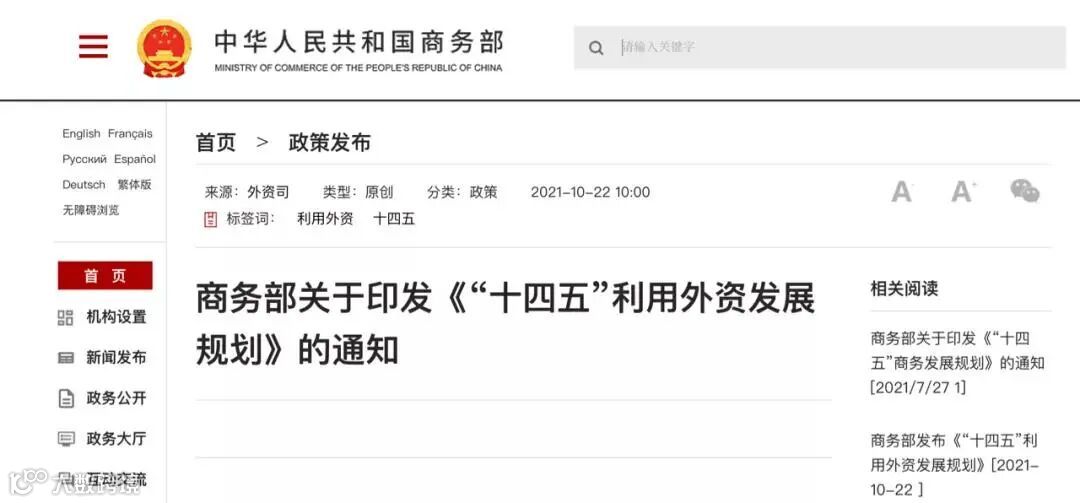 戳【阅读原文】,查看《“十四五”利用外资发展规划》全文。
