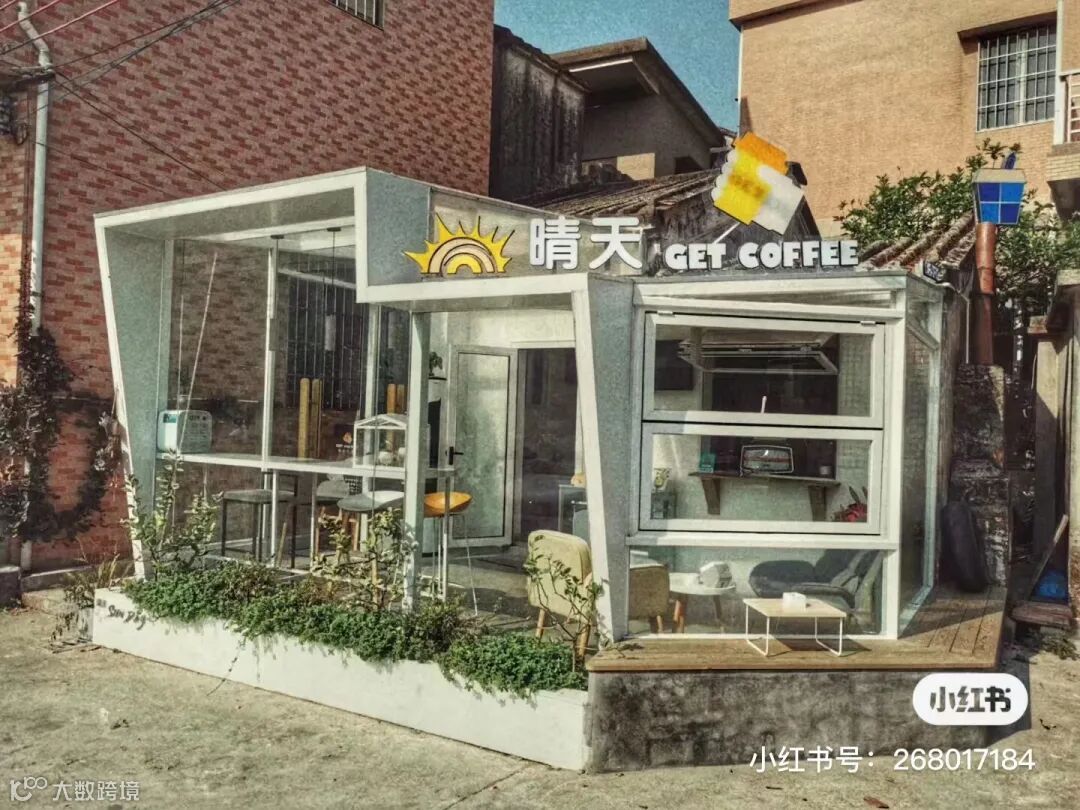 在新会新地里旧村里头,有一间旧屋改造成玻璃屋的咖啡小店,大片透明玻璃搭配白色建筑,光线相当充足。