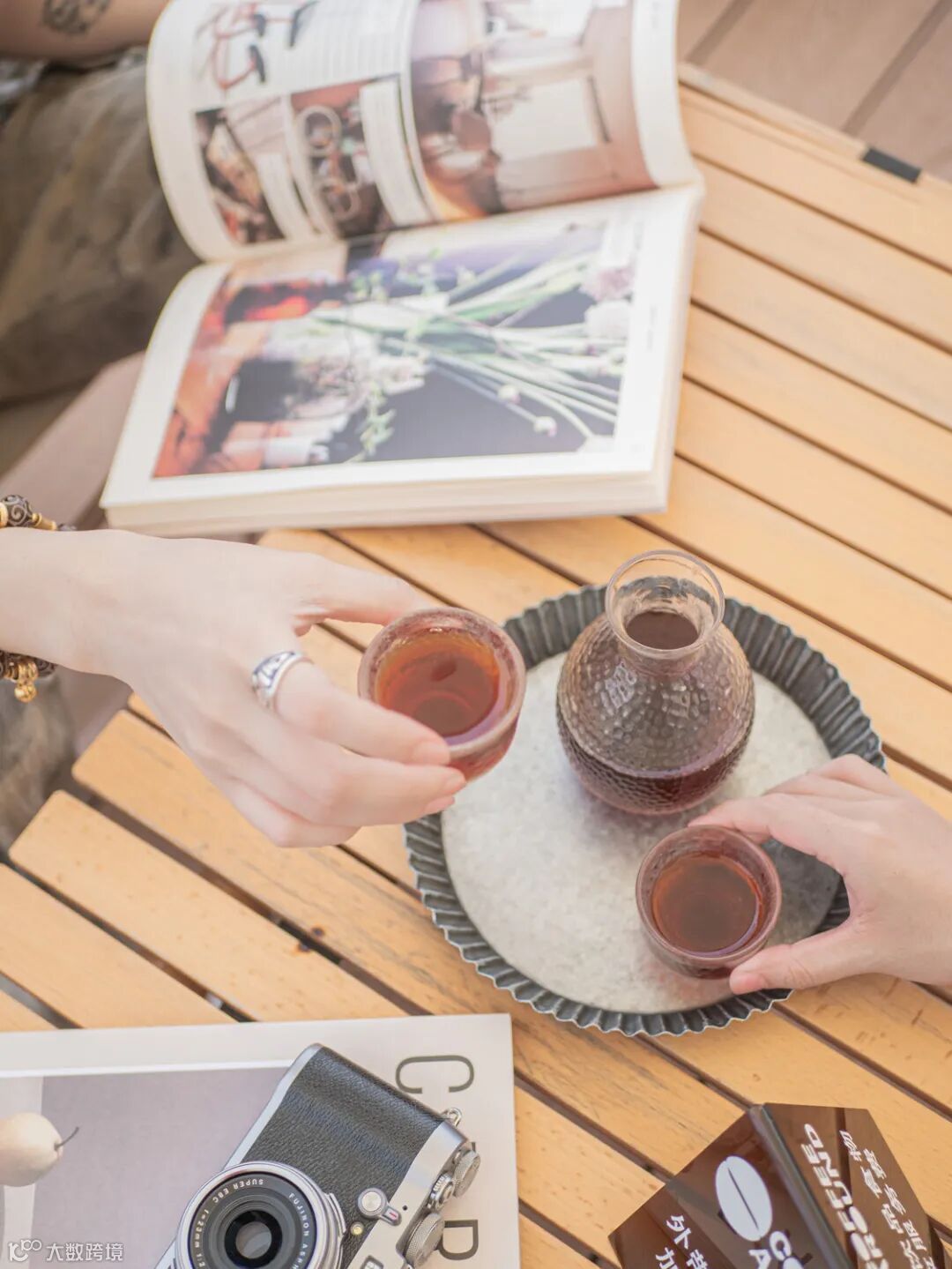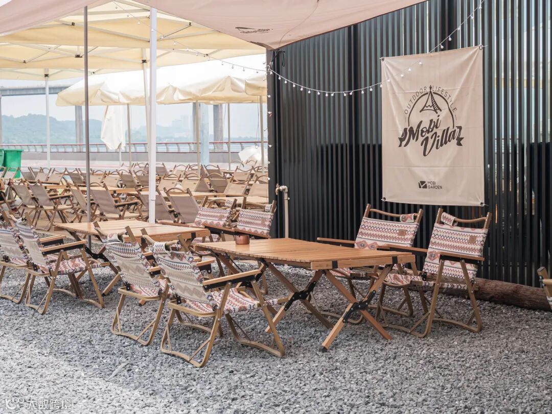 室外摆放了一排排露营桌椅,蓝天白云之下,晒着太阳喝咖啡,惬意又慵懒。绝美的风景线,自然不能错过一番拍照。