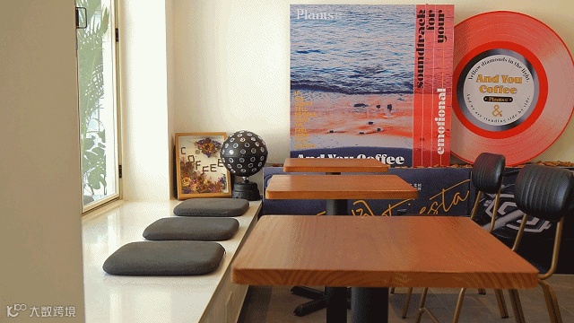 And You Coffee首店面世就是与Plants集树文创工作室合体的,品牌全案设计都是由集树文创团队负责,难怪店铺里有特别的美陈布置和日常更新海报。
