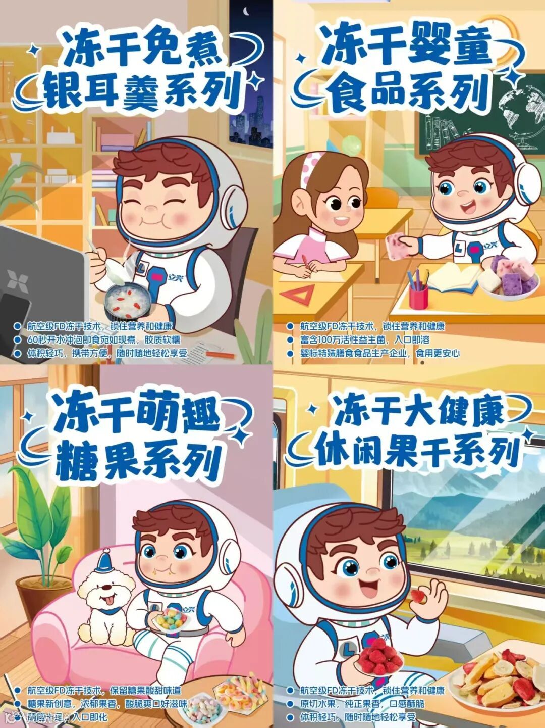 在快节奏与健康意识并行的消费浪潮中,立兴冻干以数据驱动洞察,推出覆盖早餐代餐、露营轻食、儿童营养等细分场景的冻干产品。如“即食冻干银耳羹”、“益生菌水果块”、“黑巧魔方”等爆款,通过时尚趣味包装与功能口感强化,迅速占领年轻休闲市场。同时,依托“企业+农户”合作模式,丰富的原材料供应,以及前沿的零食消费资讯为导向,成立高效的“专精特”小组,实现从研发到上市的“60天高效转化”,确保产品始终与市场趋势同步迭代。
