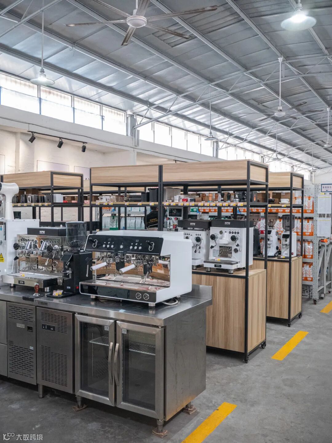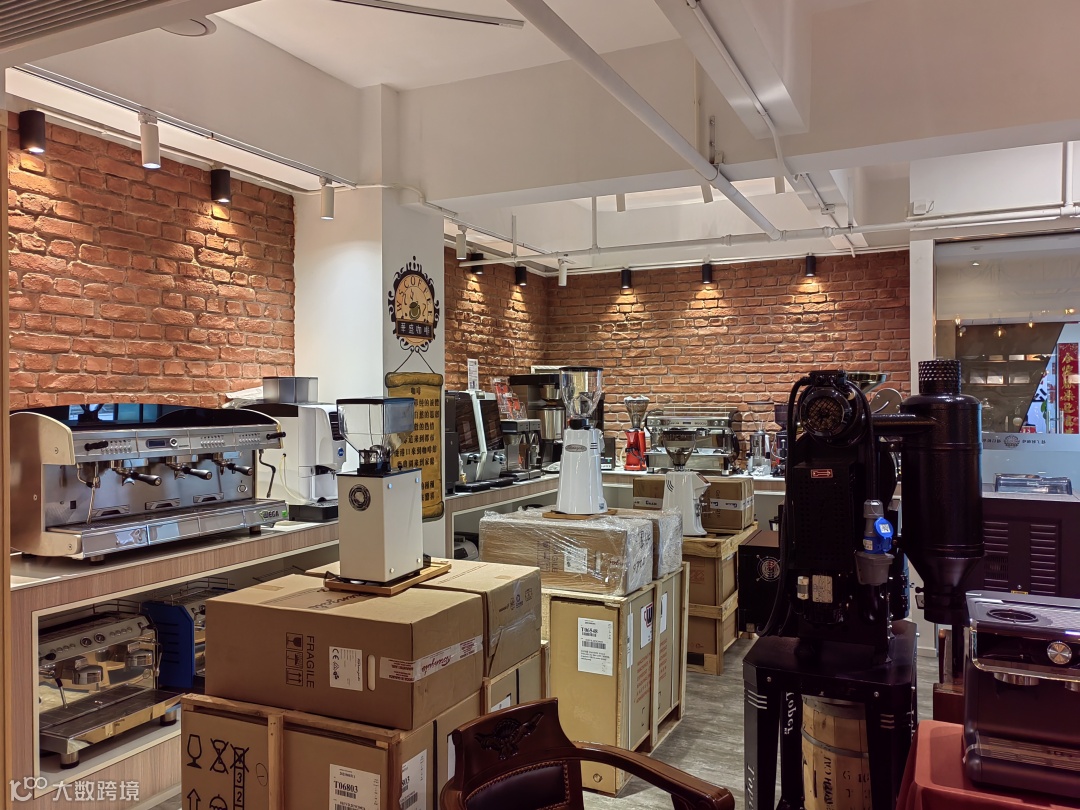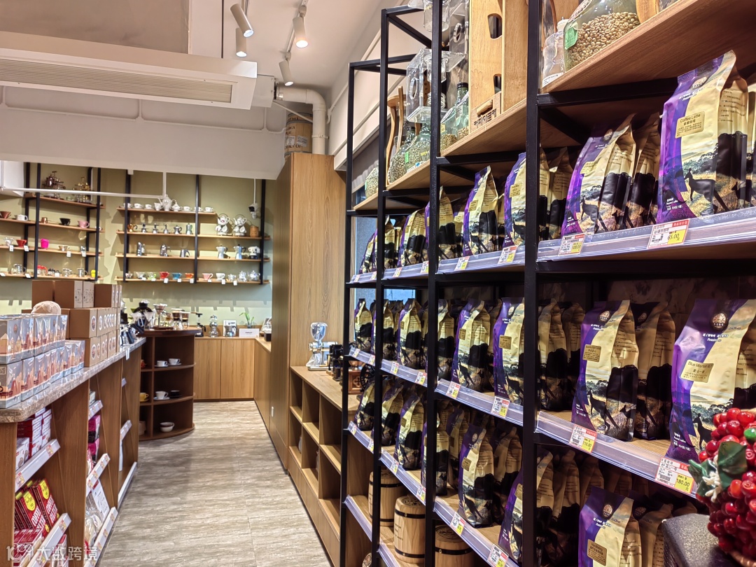 从咖啡机到原材料,一排排货架整齐地摆放好,无论是咖啡爱好者选择家用配套或者是想开店选购商用配套,这里都能满足需求。