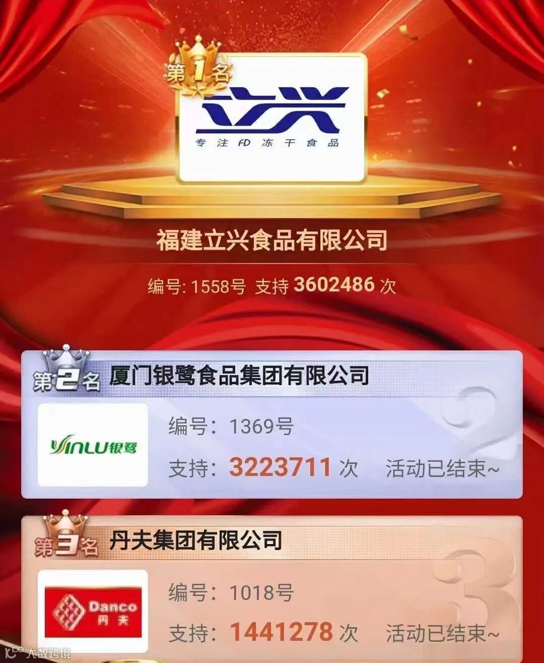 【感谢】近400W万人次投票!祝贺福建立兴在福建省优秀食品企业评选中成功夺冠,感谢有你们同行!