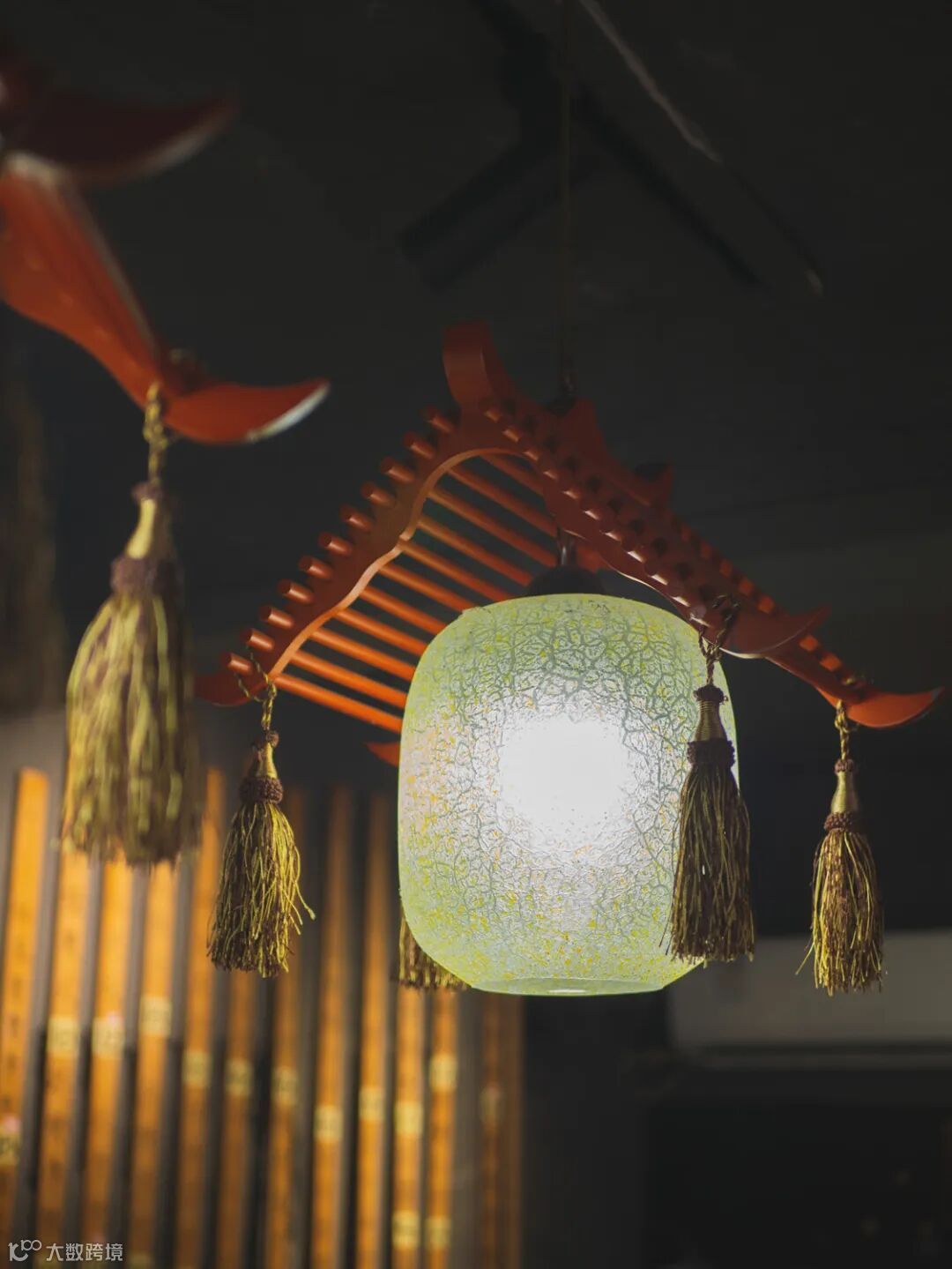 「太白小馆」在改造时保留了古屋原本的模样,再将中国风元素融入到店里。竹简制成的餐牌、木条拼接的墙饰,二楼更是有中国画、油纸伞、纸灯笼等大量挂顶装饰,感觉就像穿越到了古代的大宅。