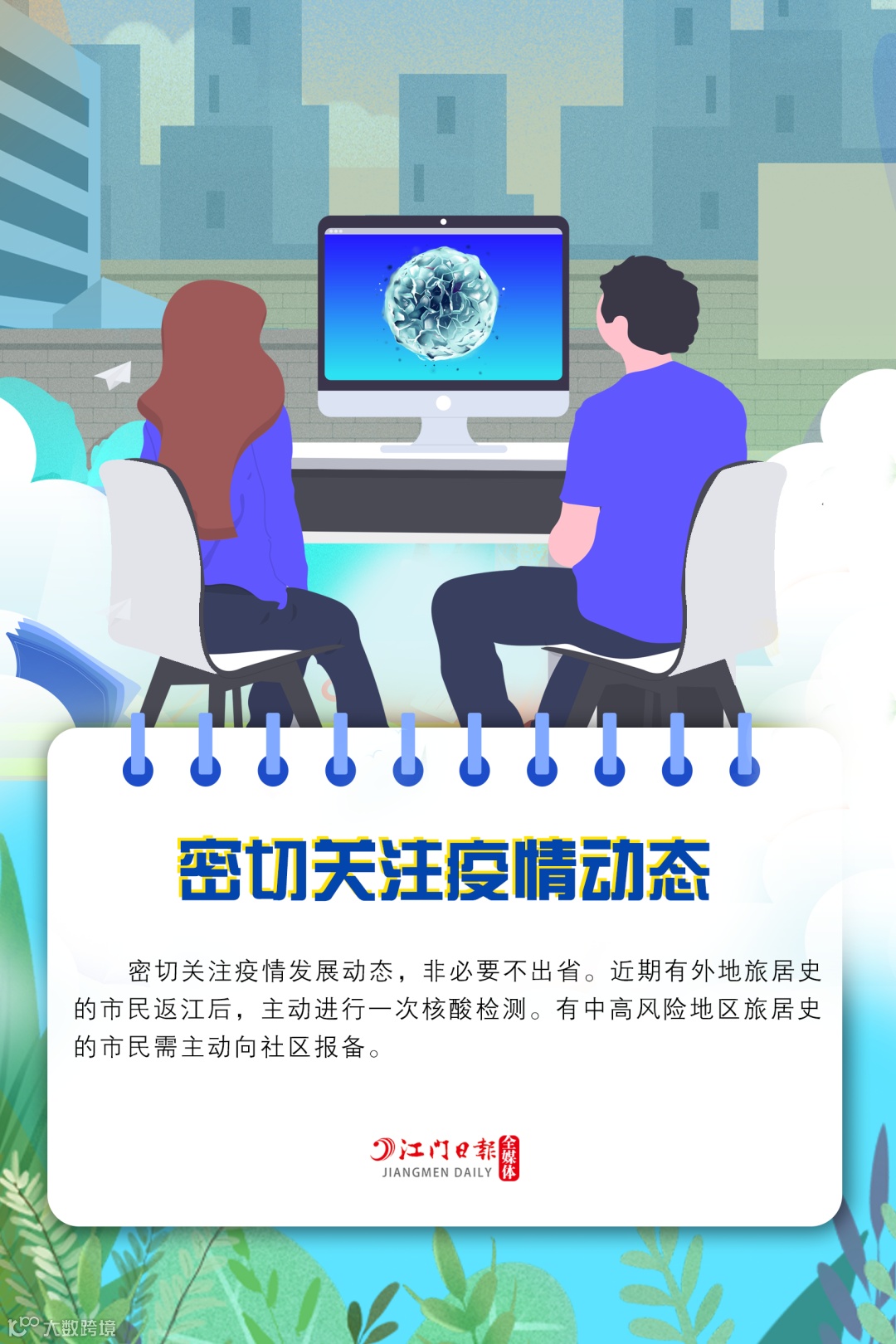 疫情防控,没有旁观者。让我们齐心协力,线上线下,共同努力,筑牢“外防输入、内防反弹”铜墙铁壁。