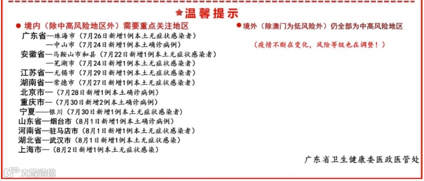 目前,广东无中高风险地区,