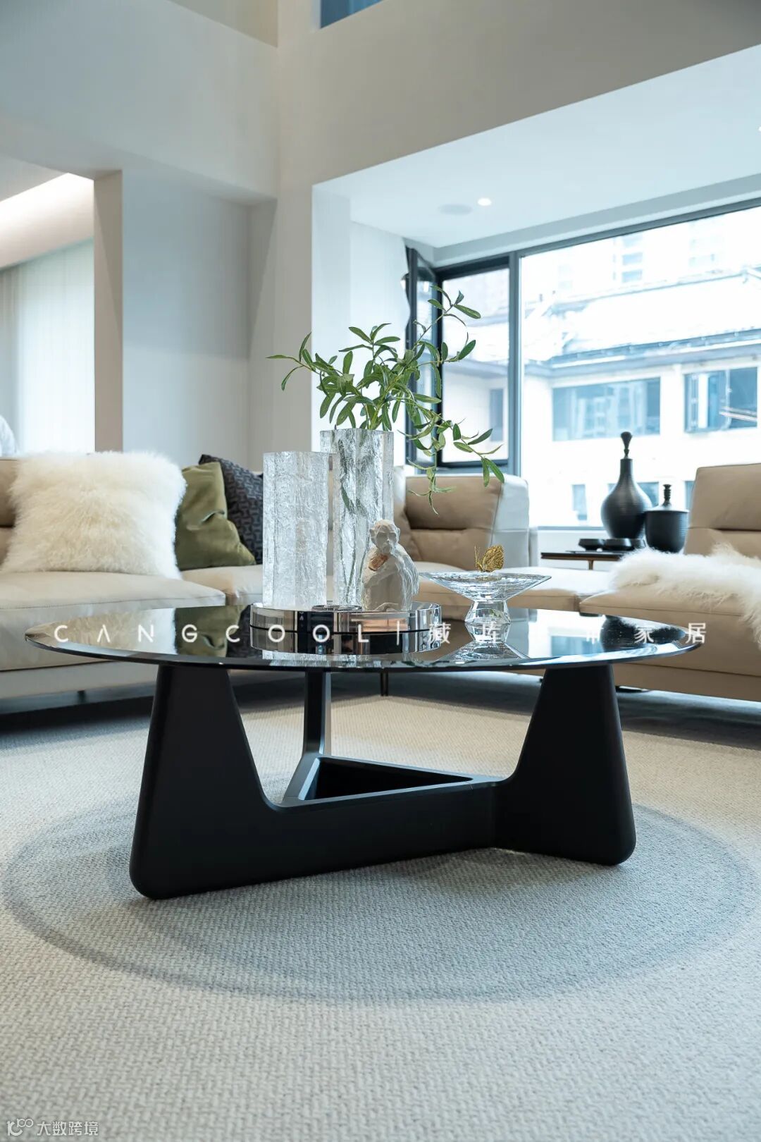 客厅采光特别好,保证通透性的同时也提升了整体空间的美感。茶几曲线、沙发体块转角、清透质感的氛围花瓶,所有软装由内向外相互呼应,次第扩展空间感。