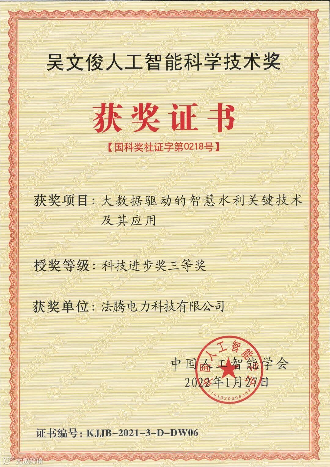 法腾电力荣获吴文俊人工智能科学技术奖“科学进步奖三等奖”
