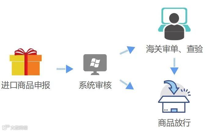 消费者在跨境电子商务平台购买进口商品后,一般会经过三个环节:①企业向海关传输“三单”信息(包括电子订单、电子运单以及电子支付信息)并向海关申报《中华人民共和国海关跨境电子商务零售进出口商品申报清单》(简称“《申报清单》);②海关实施监管后放行;③企业将海关放行的商品进行装运配送,消费者收到包裹完成签收。如下图所示: