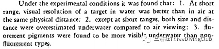 以上的数据出自U.S.Navy Diving Manual,系统的阐述了水域能见度和“视觉倒退”发生的关系。