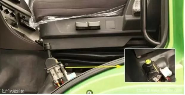 驾驶室主驾采用气囊座椅,可以调节高度和仰角。货厢的举升控制手柄安装在主驾驶座的左侧,并带有类似断气刹手柄一样的锁定功能,防止误操作。