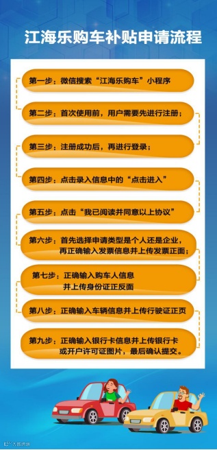 (一)企业登录“江海乐购车”(暂定)小程序提出申请,符合条件的企业即可参加活动。