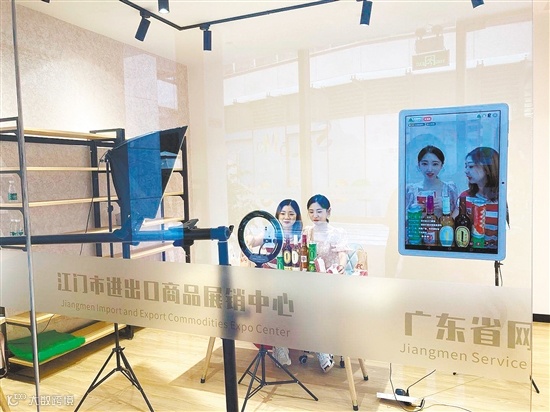 不少本地企业负责人看好电商发展的前景,积极对接江门电商(数字)产业园。图为企业在园内进行直播。