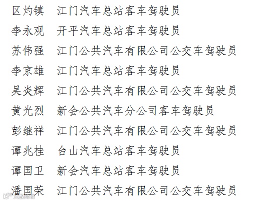 “最美驾驶员”名单