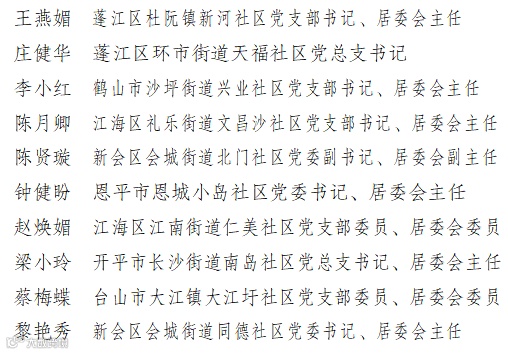 “最美社区工作者”名单