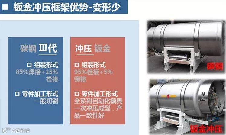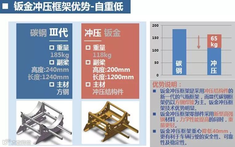 面对市场上越来越强烈的高端化、轻量化需求,陕汽作为天然气重卡的引领者,在轻量化和可靠性方面下足了功夫。冲压气瓶框架和大气瓶是实现整车配置优化的重要改进,具体特点及提升措施如下。