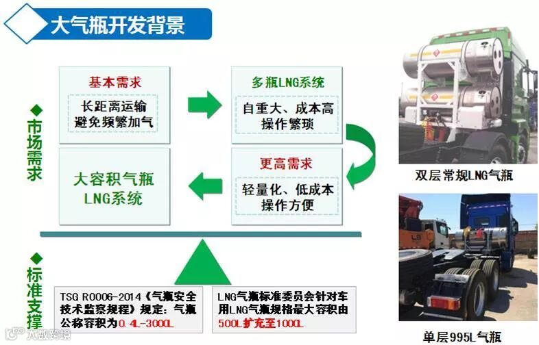在长途标载物流运输成为市场主流,以及用户对轻量化的需求越来越强烈的背景下,陕汽全面切换了LNG大气瓶。
