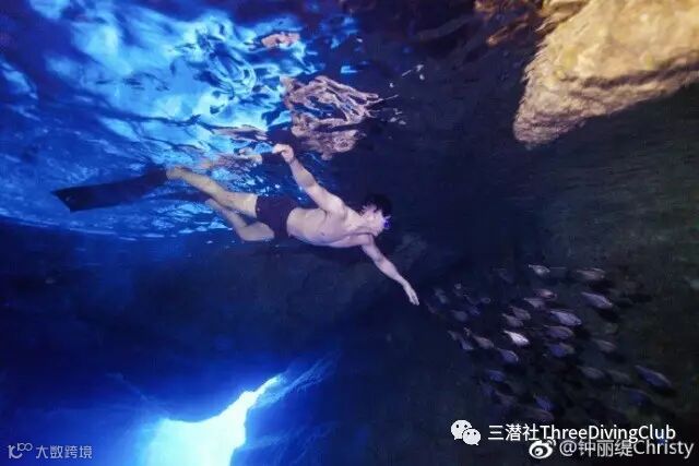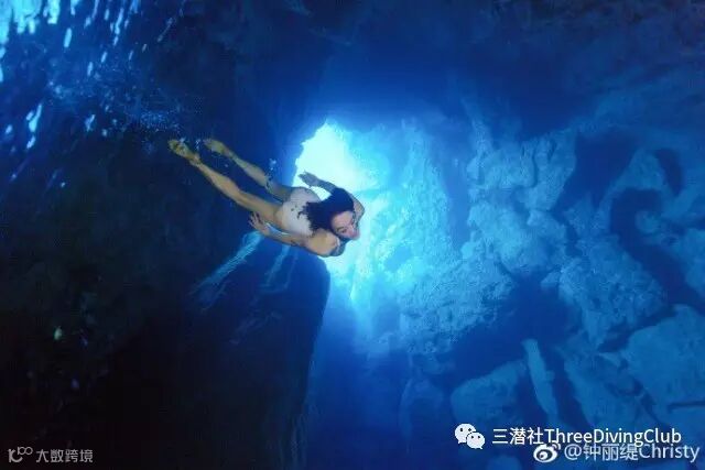 钟丽缇配文“第一次来到塞班岛的蓝洞潜水,蓝洞的魅力只能来到现场才能体会啊,一条通往大海的通道,听说里面有更多的美景,拍出这么美的照片我已经很满意了。希望以后有机会可以带孩子们一起来这里潜水。”