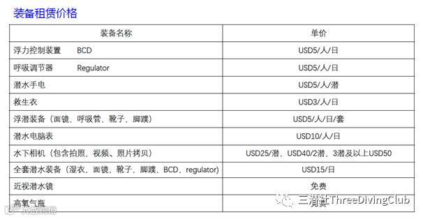 • 潜水费用(包括气瓶,配重费用)