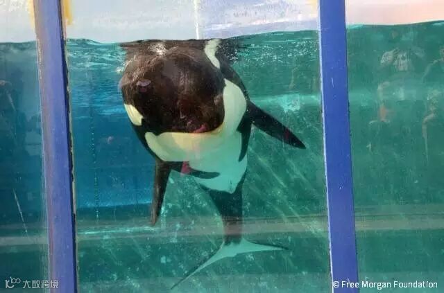 虎鲸被囚禁在海洋公园的水池里