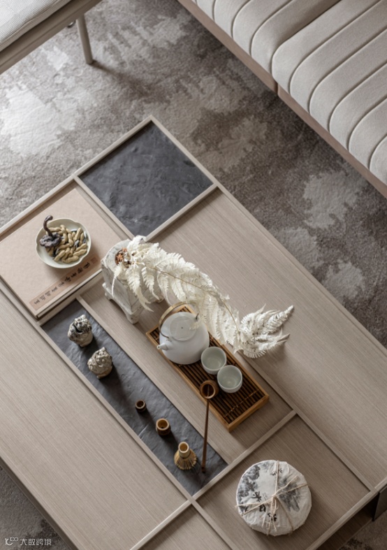 木材作为中国传统中的主要元素,不论是地板、家居、悬梁、门窗,放眼望去木材永远是数量最多的,因此,延伸到现代,木材以及木材纹样的装修材料,也是新中式风格的主要元素。木纹砖,早几年特别流行。基于环保、健康意识,越来越多人考虑到实木地板加强昂贵、质量难以保障、保养麻烦等方面的因素,便转向使用木纹瓷砖作为家装主材。木纹砖完美复刻天然木材的纹理和机理,能以不同的大小和规格实现各种新中式风格效果,因此在新中式装修设计中被广泛应用。