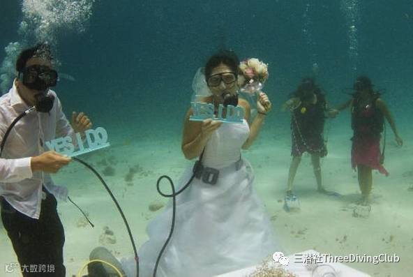 水下不能说话,所以可以准备几张防水的卡片,上面写着“我愿意/I DO”等字样,但是卡片一定要大且显眼。否则观众们很难看见你们在说些什么。
