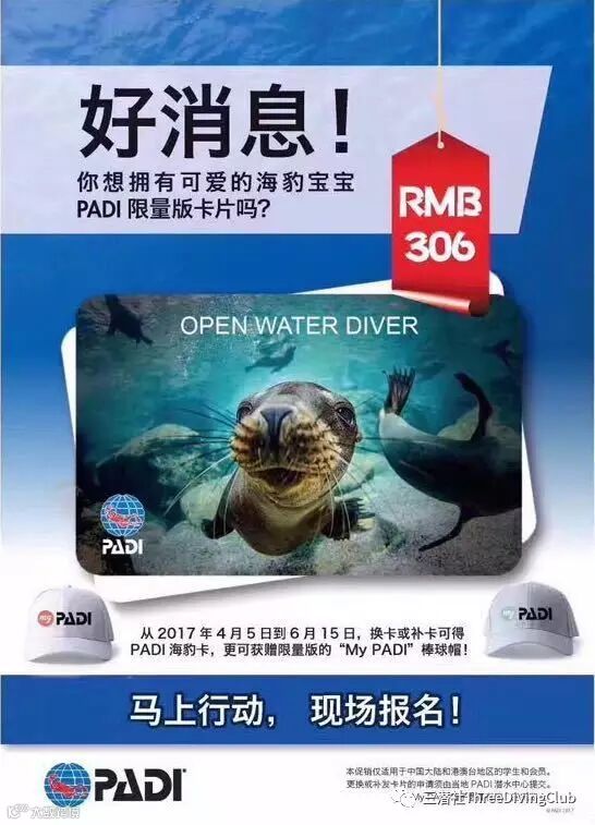 其实想要拥有一张特别的海豹限量版签证就是这么简单,另外,申请限量版海豹卡还送PADI的帽子,快快来抢吧!
