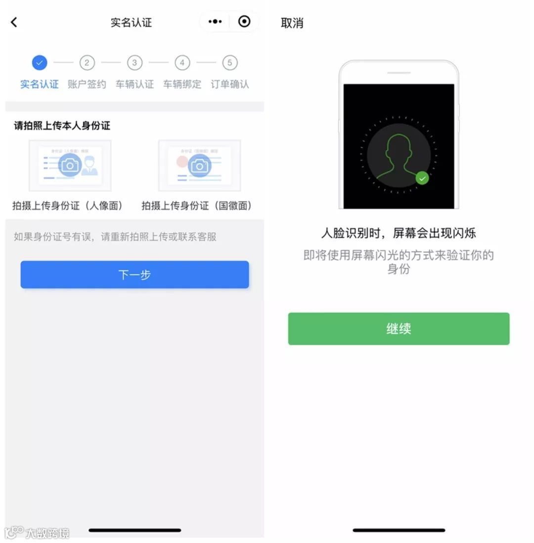 ② 实名认证:首先请认真查看办理须知、阅读《ETC用户协议》,同意《ETC用户协议》后,进入实名认证界面,实名认证需上传申请人身份证正、反两面照片。身份证识别成功后进行人脸识别认证,人脸识别成功后完成实名认证流程。