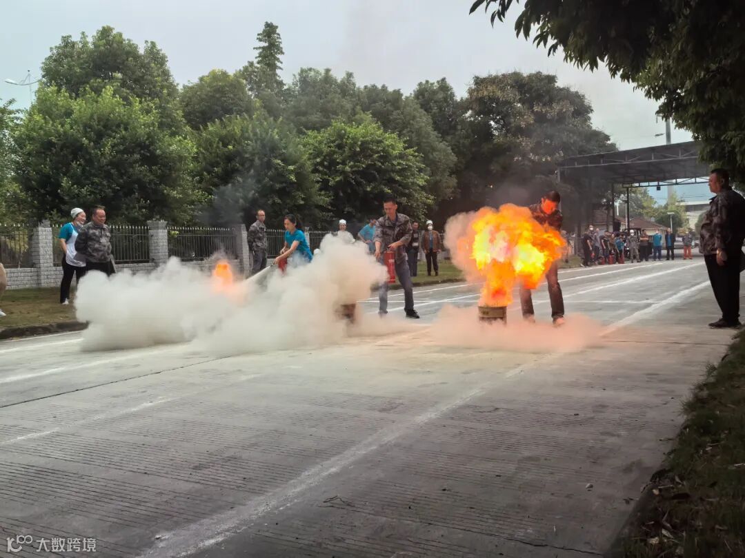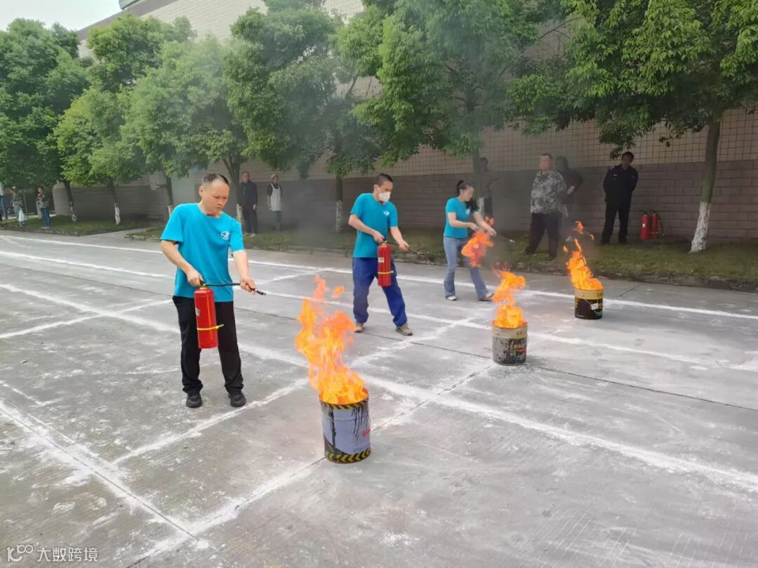 在疏散到安全区域后,员工代表进行了灭火器的使用演练。并在确保安全的前提下,使用灭火器进行灭火比赛,增强了团队的安全意识。