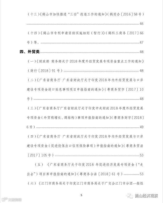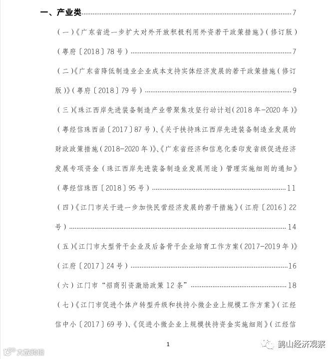 《鹤山市企业适用优惠政策汇编》共分为五大部分,分别是产业类、园区类、科技类、外贸类、人才类政策措施。