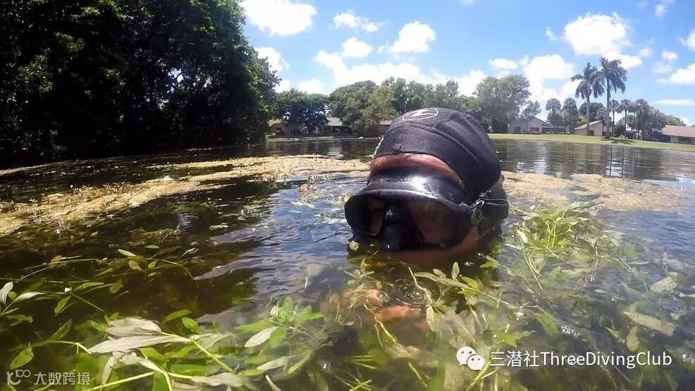 在达拉斯运动俱乐部的黄金球场上,布雷特·帕克驾驶着他的高尔夫球车。尽管气温一直在飙升,但这位42岁的津巴布韦人从头到脚都穿着3毫米的黑色潜水衣,戴着头套和潜水鞋。在通常存放高尔夫球杆的推车后面,他带着3个气瓶,每个气瓶看起来都有点破旧。在他旁边的座位上放着一些黄色的潜水网袋,他把塑料鱼饵桶的顶部锯断绑在袋子上。虽然他穿着便装时是一个苗条的运动员模样,但他现在看起来像来自黑礁湖的生物——当然,除了他驾驶着的高尔夫球车。