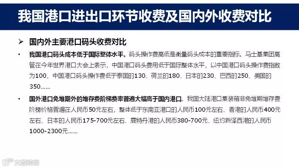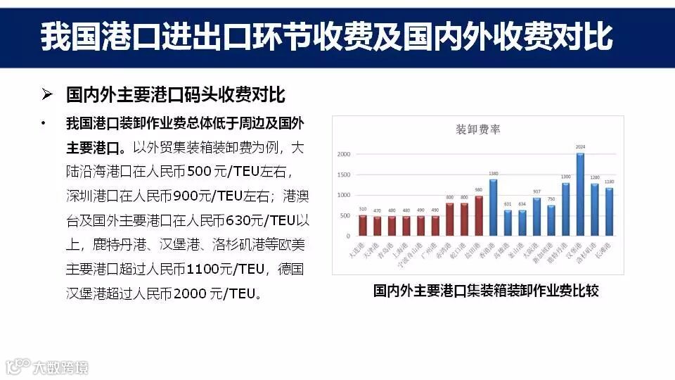 看点三:我国港口进出口环节收费及国内外收费对比情况
