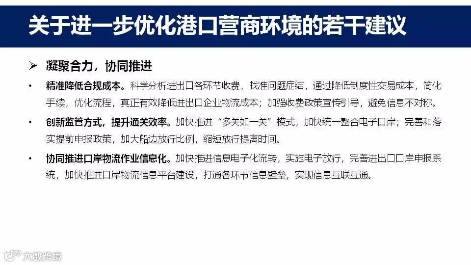 看点五:关于进一步优化港口营商环境的若干建议