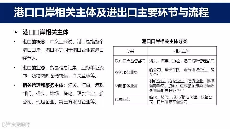 看点一: 港口口岸相关主体及进出口主要环节与流程