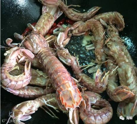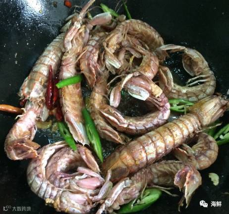 虾炸好后乘出来备用。锅里剩下的油爆香姜末,蒜末,干辣椒,再把皮皮虾倒入翻炒。