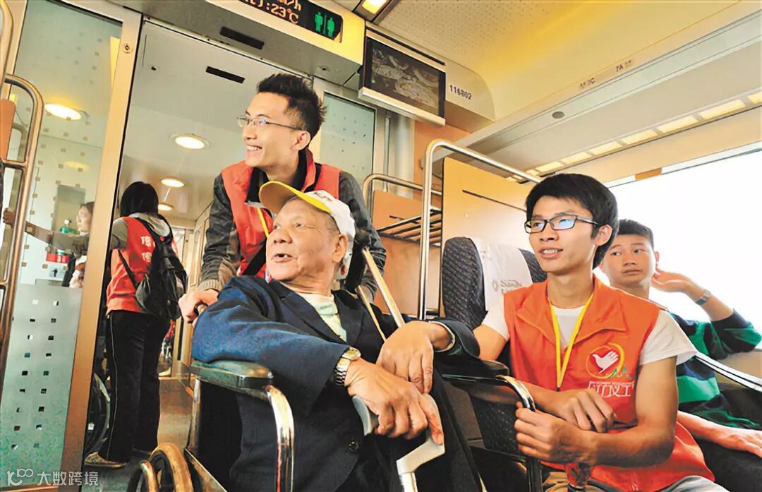 △80多岁的余荣坤第一次乘广珠城轨出行,心里有说不尽的高兴。周华东 摄