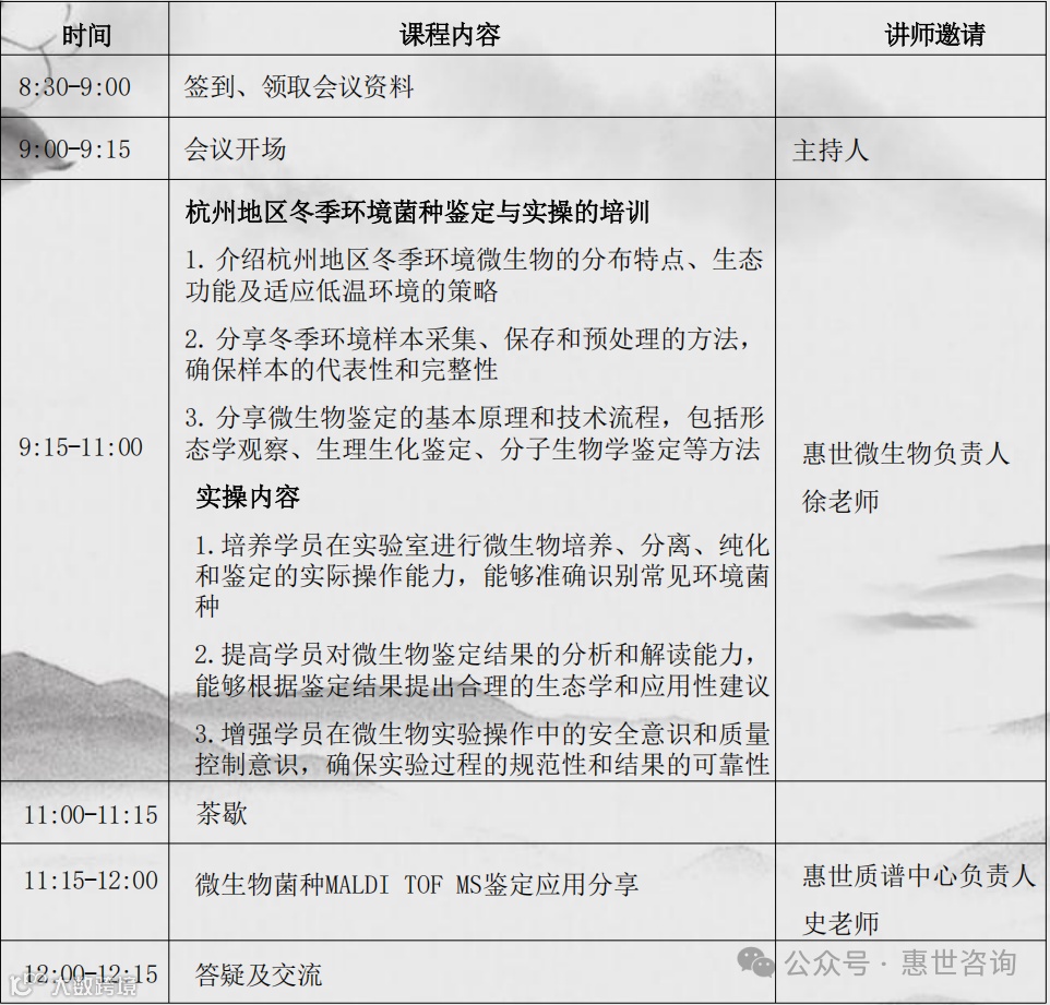 杭州惠世在2024-2025冬季获得的所有环境菌,均采用16SrDNA基因测序与MALDI-TOF质谱技术双向确认(谱图证据备索)。杭州惠世的专家将现场对比两种技术在环境微生物与药品污染菌鉴定中的优势,旨在帮助学员掌握菌种鉴定的理论知识和实际操作技能: