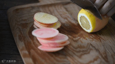 第二步:取出柠檬切薄片(一只柠檬切15-20片左右),更容易泡出香气。