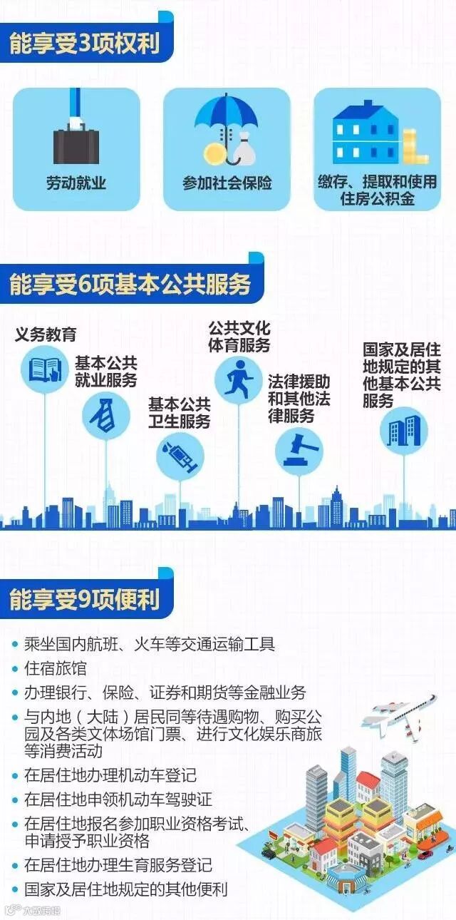 按照《办法》规定,前往内地(大陆)居住半年以上,符合有合法稳定就业、合法稳定住所、连续就读三项条件之一的港澳台居民,根据本人意愿,持有效的港澳居民来往内地通行证或五年期台湾居民来往大陆通行证,到居住地公安机关即可申请办理港澳台居民居住证。