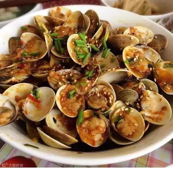 1.锅里放冷水盖过花甲,盖锅盖,烧水直至花甲开口,花甲一开口翻几下,一熟马上捞起一边沥干水分待用。