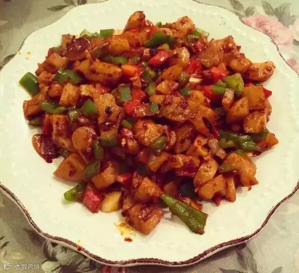 2、最后炒干辣椒段和花椒时,锅里底油只用放一点,也是小火慢炸,如果口味重的可再加些花椒粉和辣椒粉,这样可以更辣更麻。