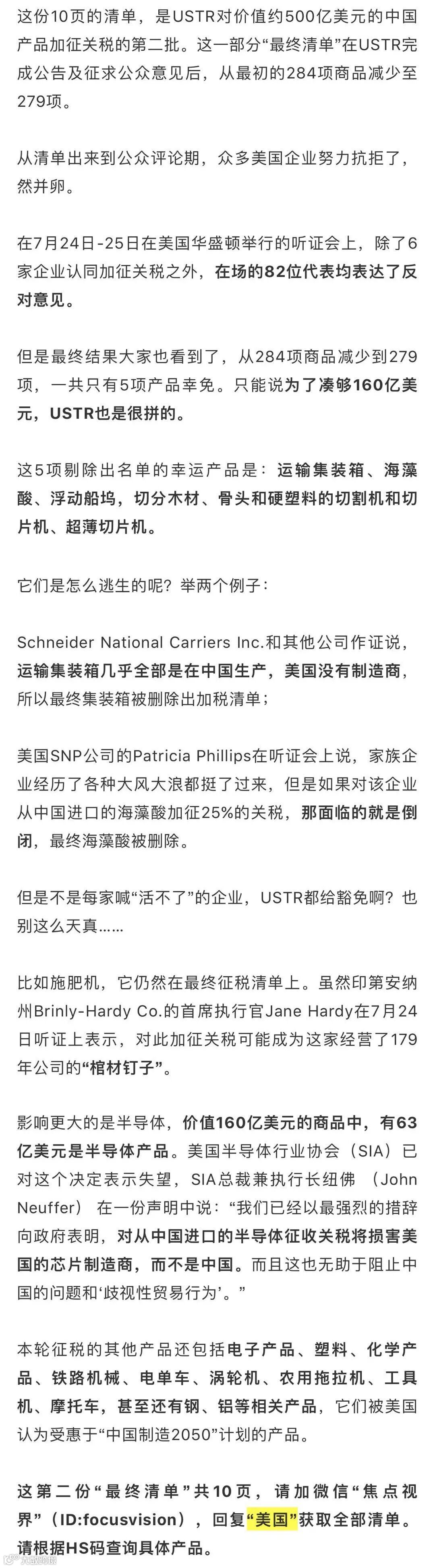 全部500亿+2000亿美元征税清单请加微信“焦点视界”(focusvision),回复“美国”获取。