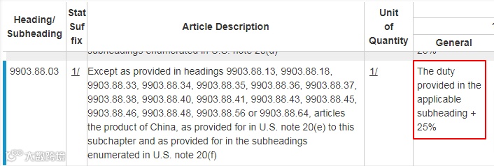 可以在美国贸易代表办公室给出的官方查询网址搜索8位的HTS编码,以确认产品是否中枪。