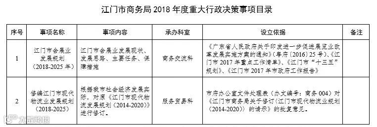 2018年市商务局首次公示的重大行政决策事项目录如下:
