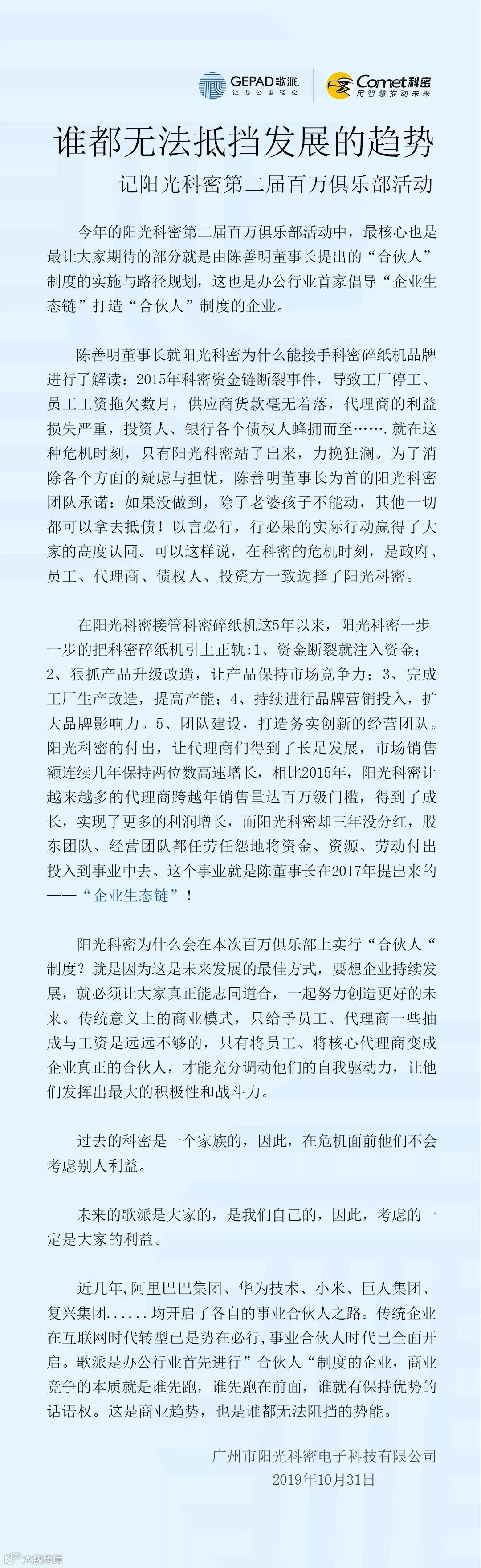 导读:阳光科密第二届百万俱乐部顺利举行!