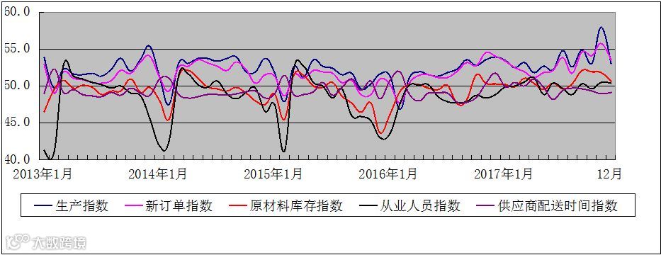 其中,受美国税改预期影响,新出口订单指数为50.1,较上月回落4.0个百分点,下一步需密切关注出口订单变动情况。