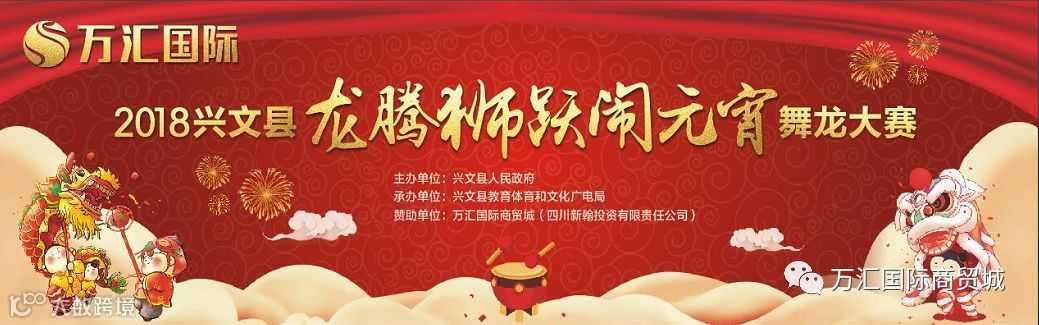正月十二(也就是明天)下午,由兴文县人民政府主办、兴文县教育体育和文化广电局承办、万汇国际商贸城冠名赞助的——2018兴文县“龙腾狮跃”闹元宵舞龙大赛将在光明坝市民广场举行!
